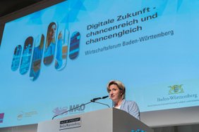 Die digitale Transformation werde zu einer Neustrukturierung der Arbeitswelt führen. Dies biete die Chance, den veränderten, vielfältigeren Werte-, Lebens- und Berufsvorstellungen der Beschäftigten gerechter zu werden - gerade auch für Frauen, so Hoffmeister-Kraut. Durch veränderte Berufsbilder, neue Karriereprofile und moderne, digital unterstützte Arbeitsmodelle würden einst männlich dominierte Arbeitsbereiche, insbesondere in den MINT-Berufen und Führungspositionen, verstärkt auch für Frauen geöffnet und attraktiver. Kurzum: "Die Digitalisierung bietet die Chance für den Ausbau einer modernen Arbeitswelt mit gleichberechtigter und partnerschaftlicher Beschäftigung." Denn durch die Digitalisierung sei möglich, flexibler und mobiler zu arbeiten, Beruf und Privatleben partnerschaftlicher zu vereinbaren und in neuen und vielfältigeren Arbeits- und Karrieremodellen tätig zu sein. Wie die Digitalisierung als Chance für eine moderne gleichberechtigte Arbeitswelt konkret genutzt werden kann und wie sich Unternehmen bereits heute auf die digitale Zukunft vorbereiten und ihre Unternehmensorganisation und -kultur weiterentwickeln können, wurde intensiv diskutiert und an Beispielen aus der (Unternehmens-)Praxis vorgeführt.